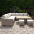 Redefine outdoor living with this meticulously crafted garden set, where modern design meets unmatched durability. The intricate 5mm half-round HDPE wicker weave creates a realistic appearance while offering superior weather resistance. The lightweight yet robust powder-coated aluminum frame ensures longevity against rust and corrosion, while eco-conscious acacia wood feet add both stability and environmental responsibility. The grade 5 Olefin fabric cushions maintain their vibrancy while resisting UV damage and moisture, drying quickly for practical everyday use. This collection demonstrates thoughtful engineering in every aspect, from its weatherproof construction to its easy-maintenance design, requiring only mild soap and water for the wicker surfaces. For retailers seeking to offer complete outdoor solutions, this set pairs beautifully with our selection of outdoor lighting options, including the Pella Table Lamp for ambient evening illumination, and our collection of weather-resistant decorative mirrors such as the Chico Black Large Wire Mirror or Rust Effect Large Arched Window Mirror, which can create an illusion of expanded space in outdoor areas. The neutral palette and contemporary design language make this set a sought-after addition to any outdoor retail collection, appealing to customers who value both aesthetics and functionality in their exterior living spaces. Sofa x 2 (L)185cm x (D)92cm x (H)72cm Corner (D)95cm x (W)95cm x (H)72cm Stool (H)40cm x (W)40cm x (D)40cm.